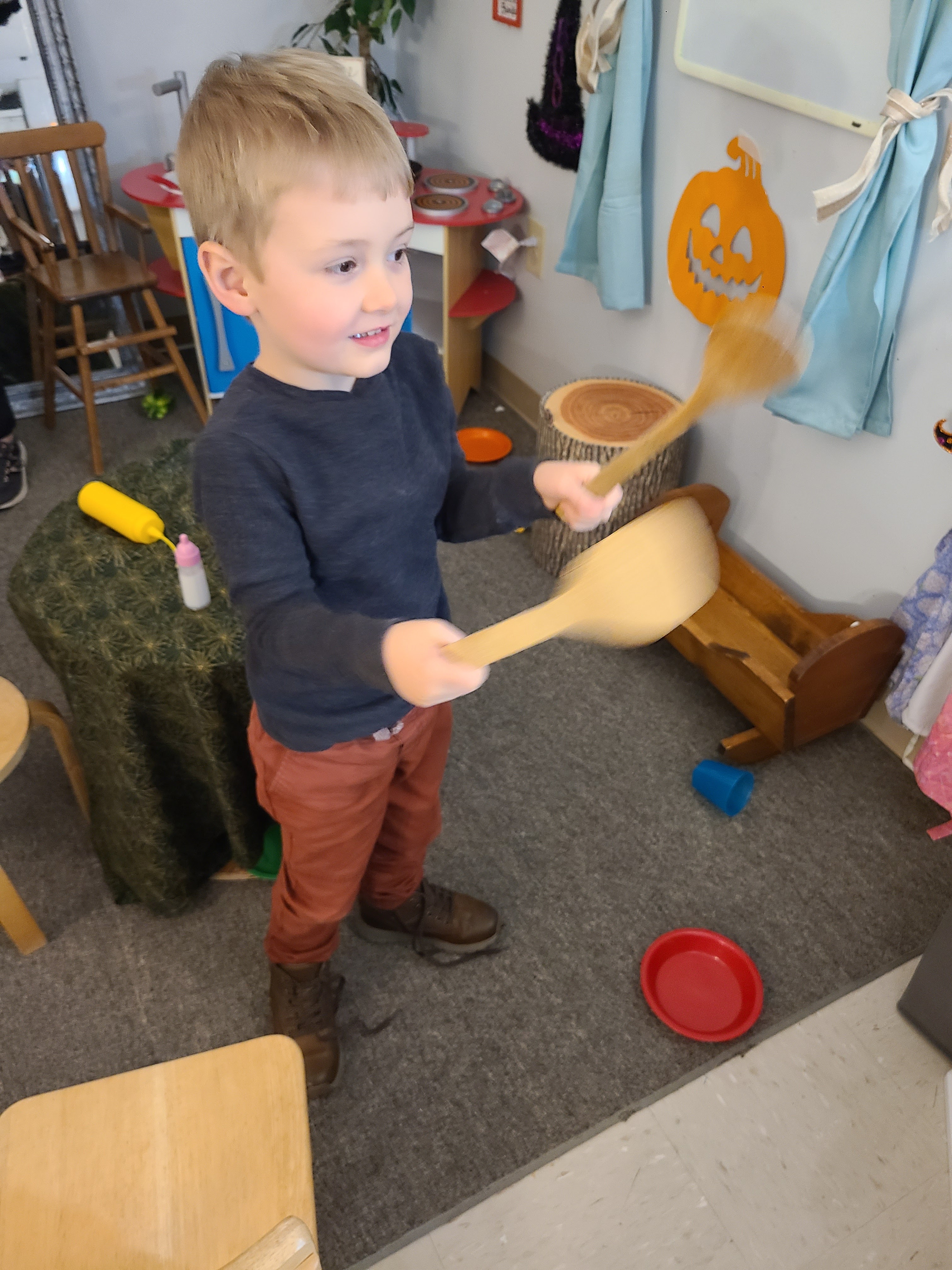 Since we stayed inside, our gross motor time is assigned and at an earlier time than normal. The collaboratory is a place where we can build, jump, play ball wall, and do wind tunnel.